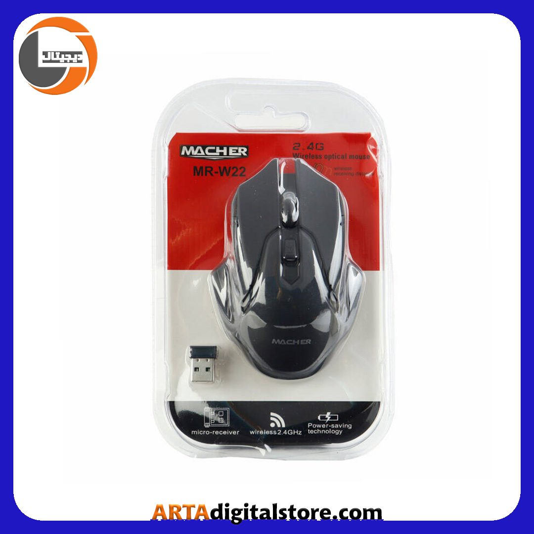 موس بی سیم Macher MR-W22 Black 🔶 گارانتی دارد 📋مشخصات: ابعاد: 42×75×113 میلی متر طراحی: ارگونومیک نوع اتصال: بی سیم رابط اتصال: دانگل USB برد بی سیم: حدود 10 متر فرکانس بی سیم: 2.4 گیگاهرتز نوع حسگر: اپتیکال دقت حسگر موس: 1600/800 DPI تعداد کلیدها: 6 کلید سازگار با سیستم عامل: Windows دارای اتصال Plug & Play دارای کلید تنظیم DPI #️⃣کد کالا :2483 بهمراه 48 ساعت مهلت تستویژگی ها