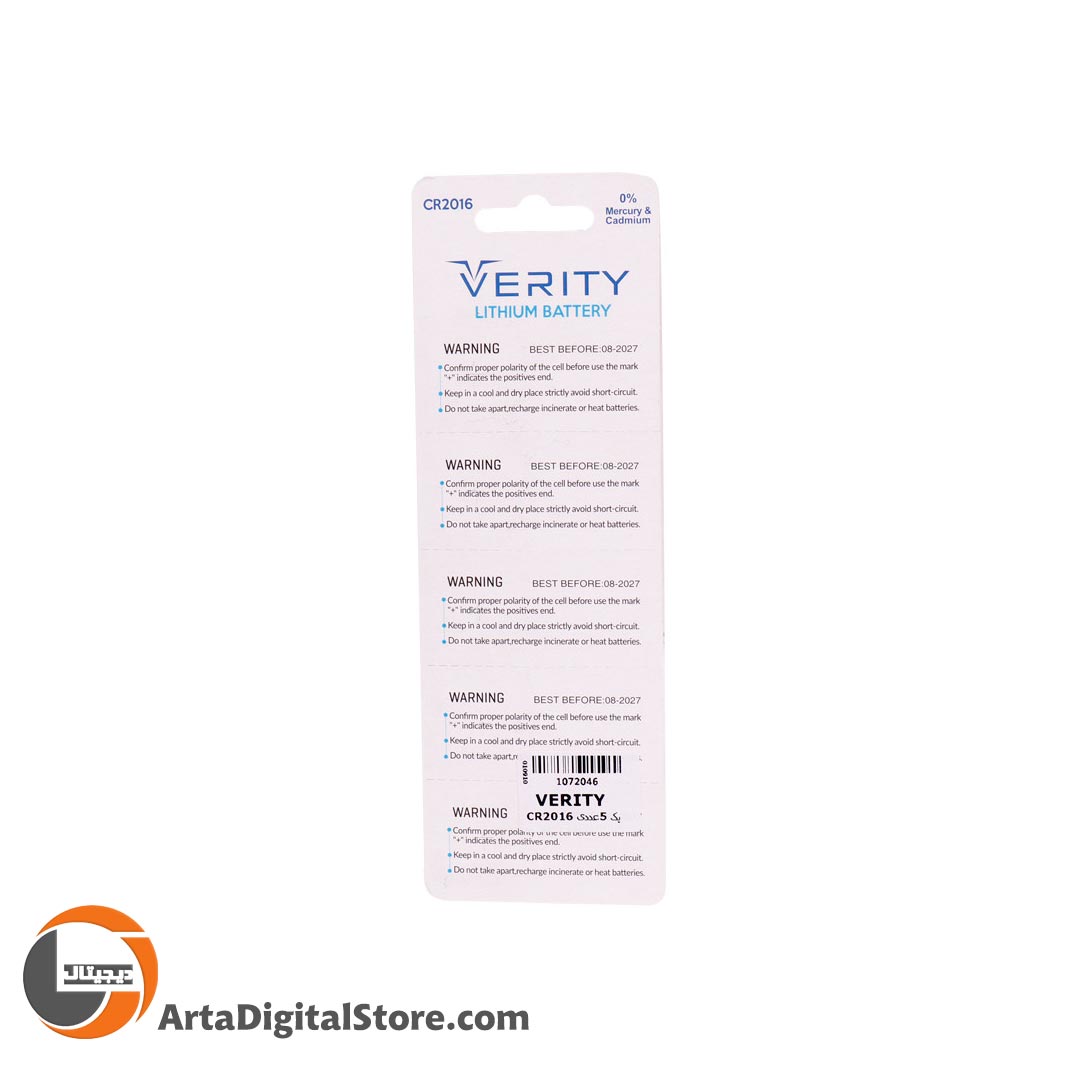 باتری سکه ای وریتی Verity CR2016 Lithium Battery 3V تکی