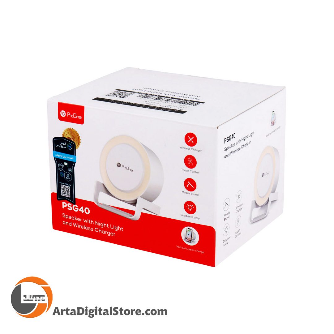 شارژر بی سیم و چراغ رومیزی اسپیکر دار ProOne PSG40 Night Light Wireless Speaker 15W Black