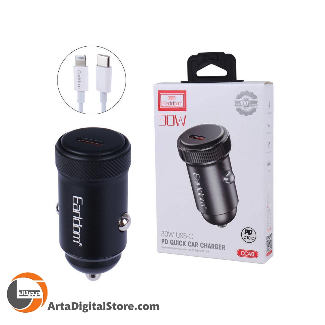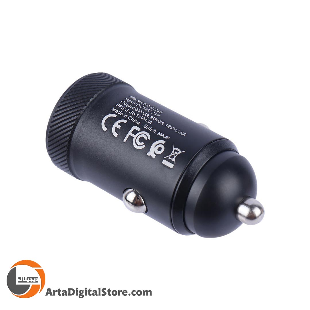 شارژر فندکی فست شارژ Earldom ES-CC40 3A PD 30W Car Charger Black