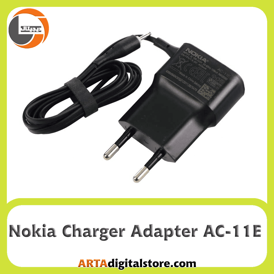 محصول شارژر نوکیا سوزنی ریز AC-11E سیاه است. این شارژر با قابلیت شارژ سریع و دارای قابلیت اتصال به ولتاژ 100 تا 240 ولت است. همچنین این شارژر دارای طراحی کوچک و حمل آسان است.