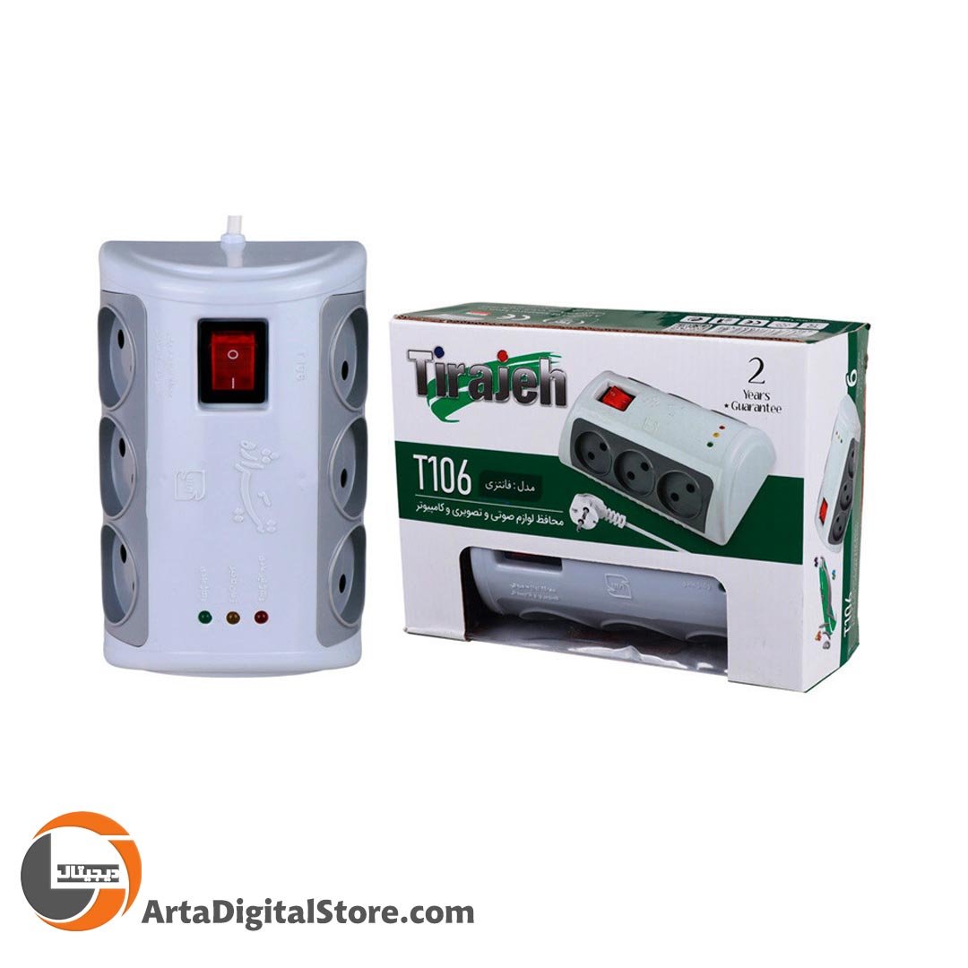 چند راهی و محافظ برق Tirajeh T106 Power Strip 6 Port White طول 1.8m