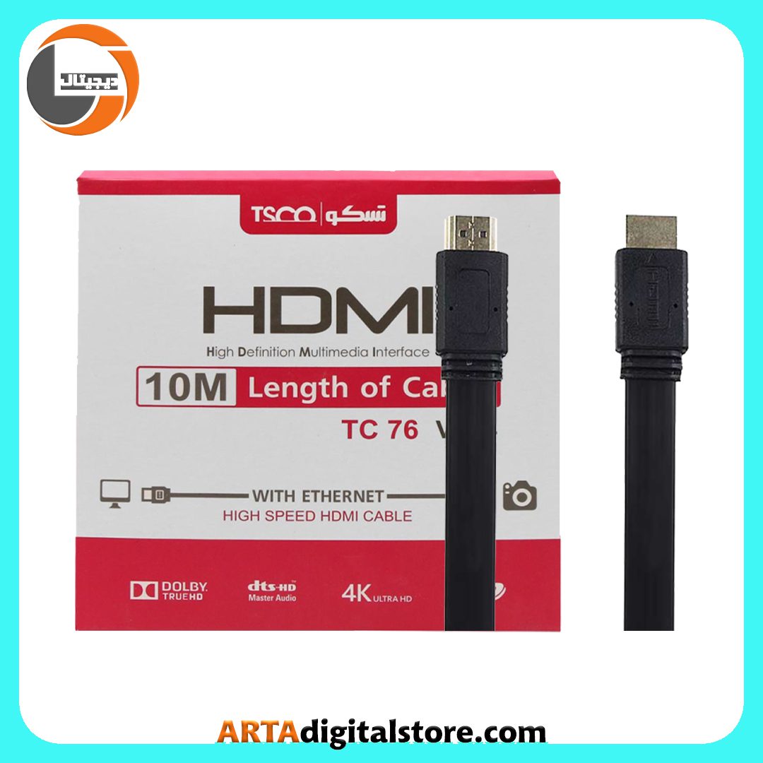 کابل HDMI TSCO TC76 با طول 10 متر در رنگ مشکی، یک گزینه عالی برای اتصال دستگاههای مختلف به تلویزیون یا مانیتور میباشد. این کابل با استفاده از دیتا های موجود در اینترنت، انتقال سیگنالهای صوتی و تصویری بسیار با کیفیت فراهم میکند. از جمله ویژگیهای آن میتوان به پشتیبانی از رزولوشنهای فول اچ دی و 4K، جریان بالا برای انتقال داده و طول ایدهآل برای اتصالات دورتر اشاره کرد.