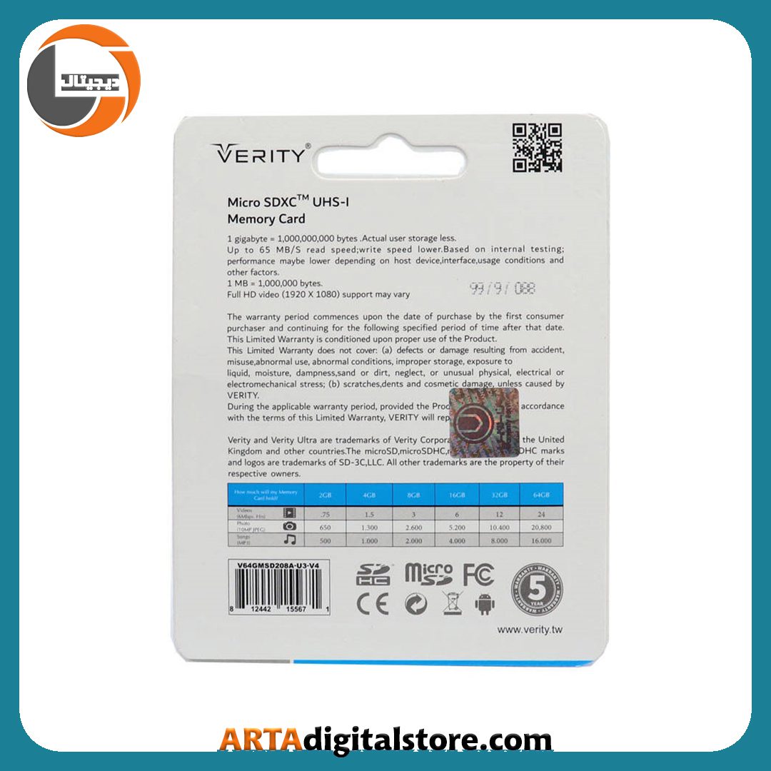 مموری کارت Memory Card Micro SD Verity U3 C10 64GB 80MB/s