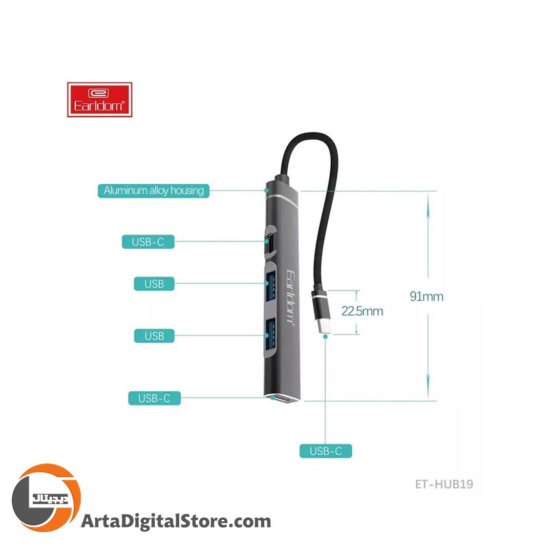 هاب تایپ سی Earldom ET-HUB19 USB3.0x2/Type-Cx2 4 Port Type-C HUB
