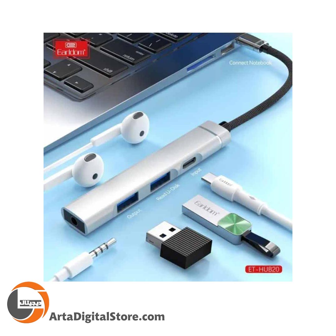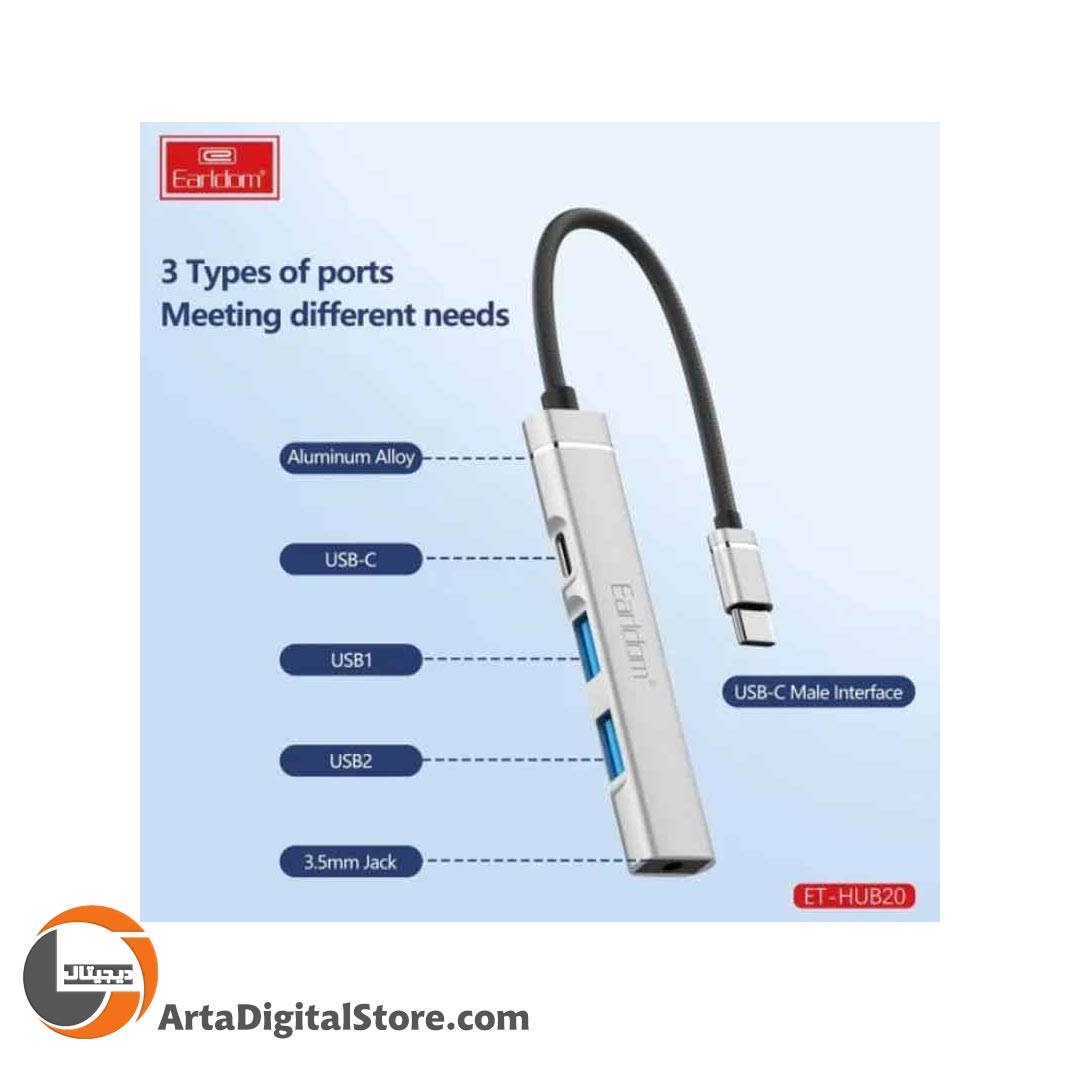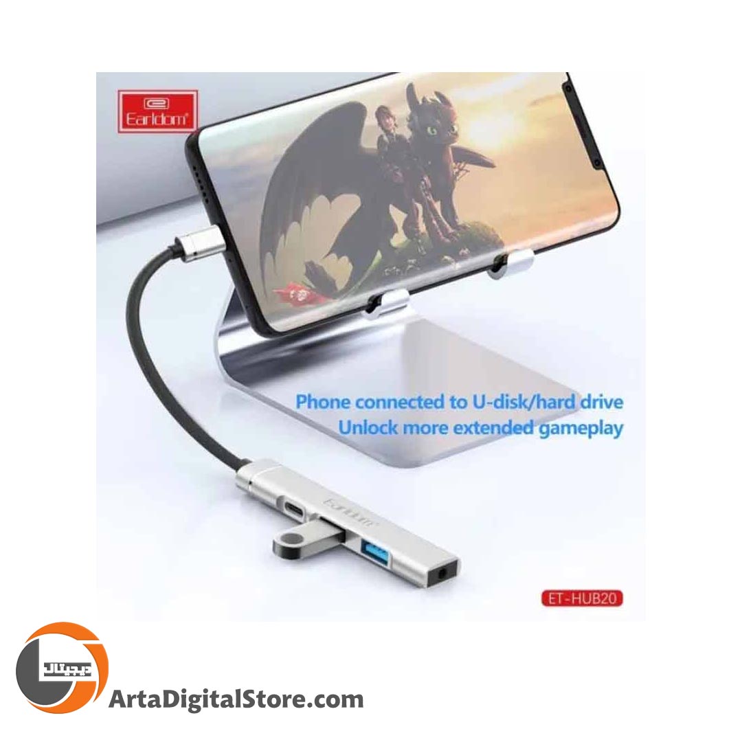 هاب تایپ سی Earldom ET-HUB20 Type-C To USB 2.0/Type-C/AUX 4Port Type-C HUB