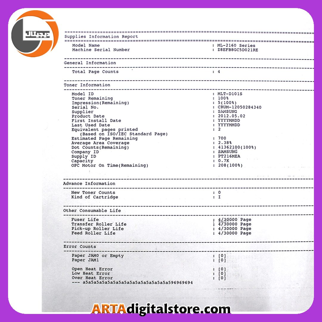 پرینتر سامسونگ Samsung Laser Printer ML-2160 Silver در حد نو 🔶 دارای کاتریج نو و پلمپ 🔧از نظر فنی: کاملا سالم و بدون کارکرد (جمعا 4 عدد پرینت جهت تست) 🔍از نظر ظاهری: کاملا سالم 📋مشخصات: ابعاد : 178 × 215 × 331 میلیمتر وزن :4 کیلوگرم تکنولوژی چاپ : چاپ لیزری کاربری : تک کاره سایز چاپ : A4 ظرفیت سینی کاغذ : 150 برگ سرعت چاپ سیاه و سفید : تا 20 صفحه در دقیقه در سایز A4 و تا 21 صفحه در دقیقه در سایز Letter رزولوشن چاپ: 1200x1200 dpi حافظه پرینتر : 8 مگابایت پردازنده : 300 مگاهرتز توان کار ماهانه : 10,000 نوع پورت ارتباط به کامپیوتر : پورت USB 2.0 #️⃣کد کالا :2868 بهمراه 48 ساعت مهلت تستویژگی ها