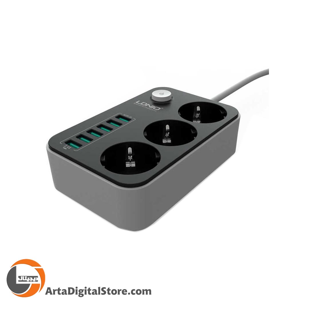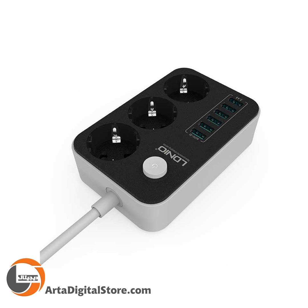 چند راهی و محافظ برق LDNIO SE3631 Power Strip 3 Socket 6 Port USB Black طول 2m