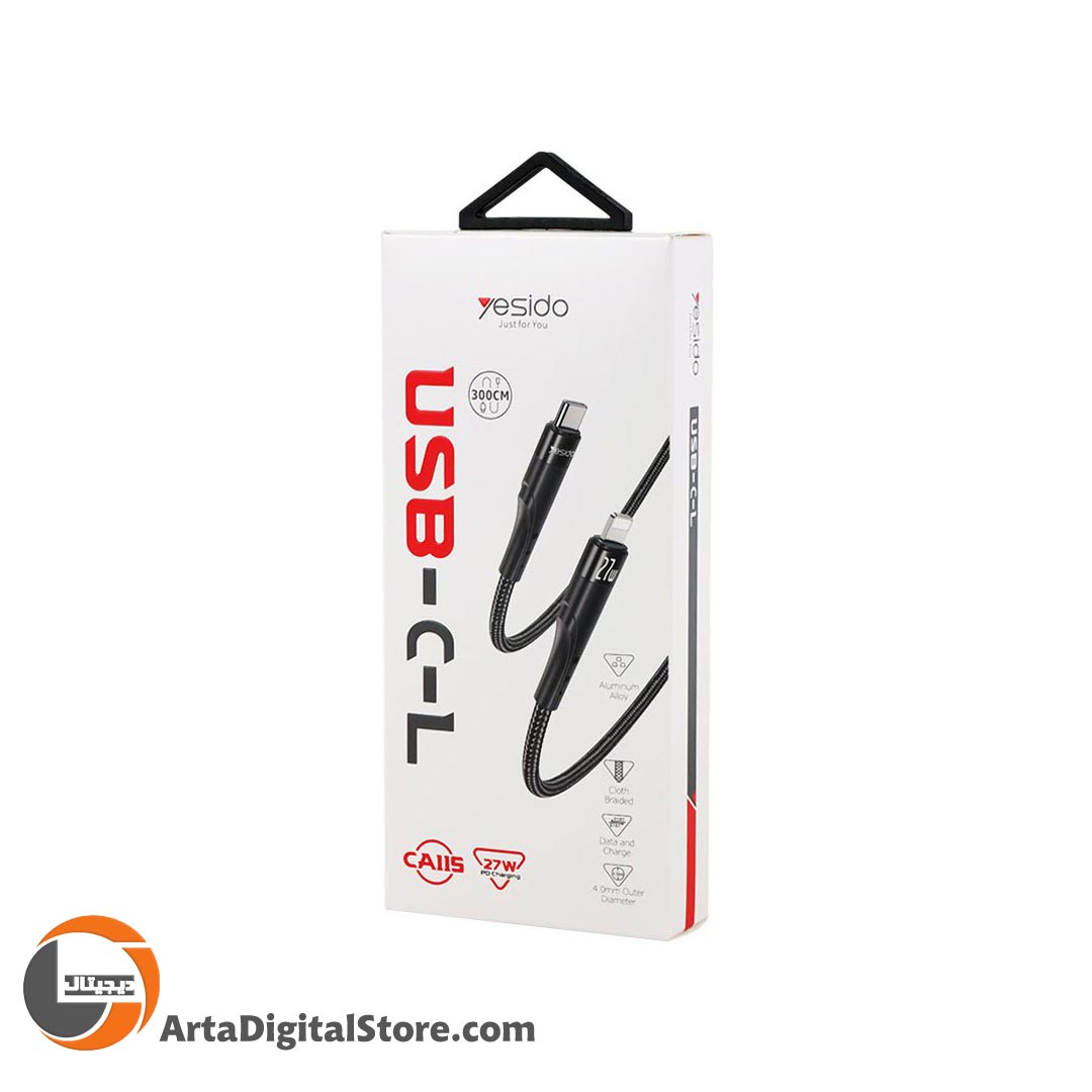 کابل تایپ سی به لایتنینگ Yesido CA115 Type-C To Lightning PD 27W Black طول 3m
