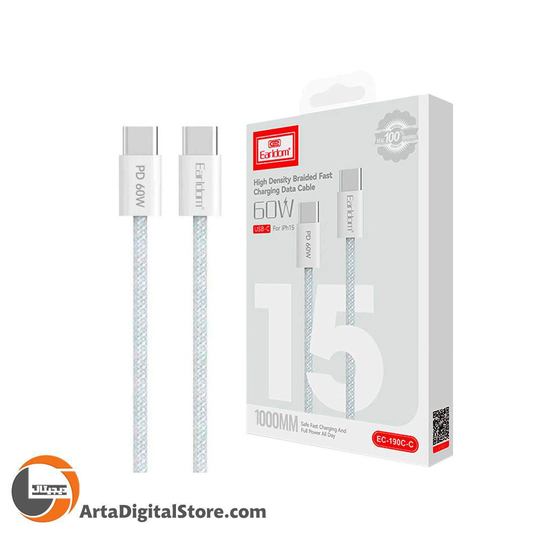 کابل تایپ سی Earldom EC-190C-C Type-C To Type-C PD 60W White طول 1m