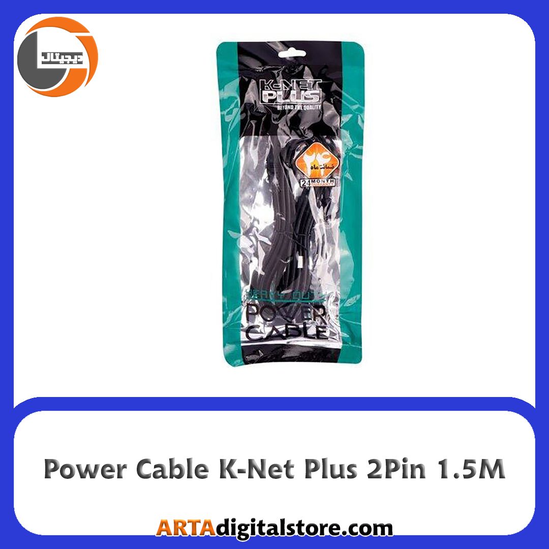 کابل پاور لپ تاپ K-Net Plus 2Pin Black طول 1.5m