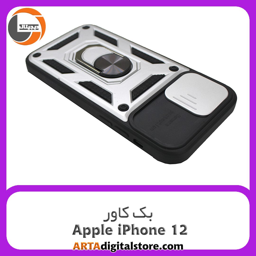 گارد بک کاور Apple iPhone 12 مشکی نقره ای 📋مشخصات: جنس : پلاستیک فشرده ویژگی های خاص : ضد ضربه و مقاوم ، دارای لبه های برجسته برای محافظت بیشتر ،دارای درب کشویی برای محافظت از لنز دوربین و دارای هولدر #️⃣کد کالا : 2843 بهمراه 48 ساعت مهلت تستمعرفی